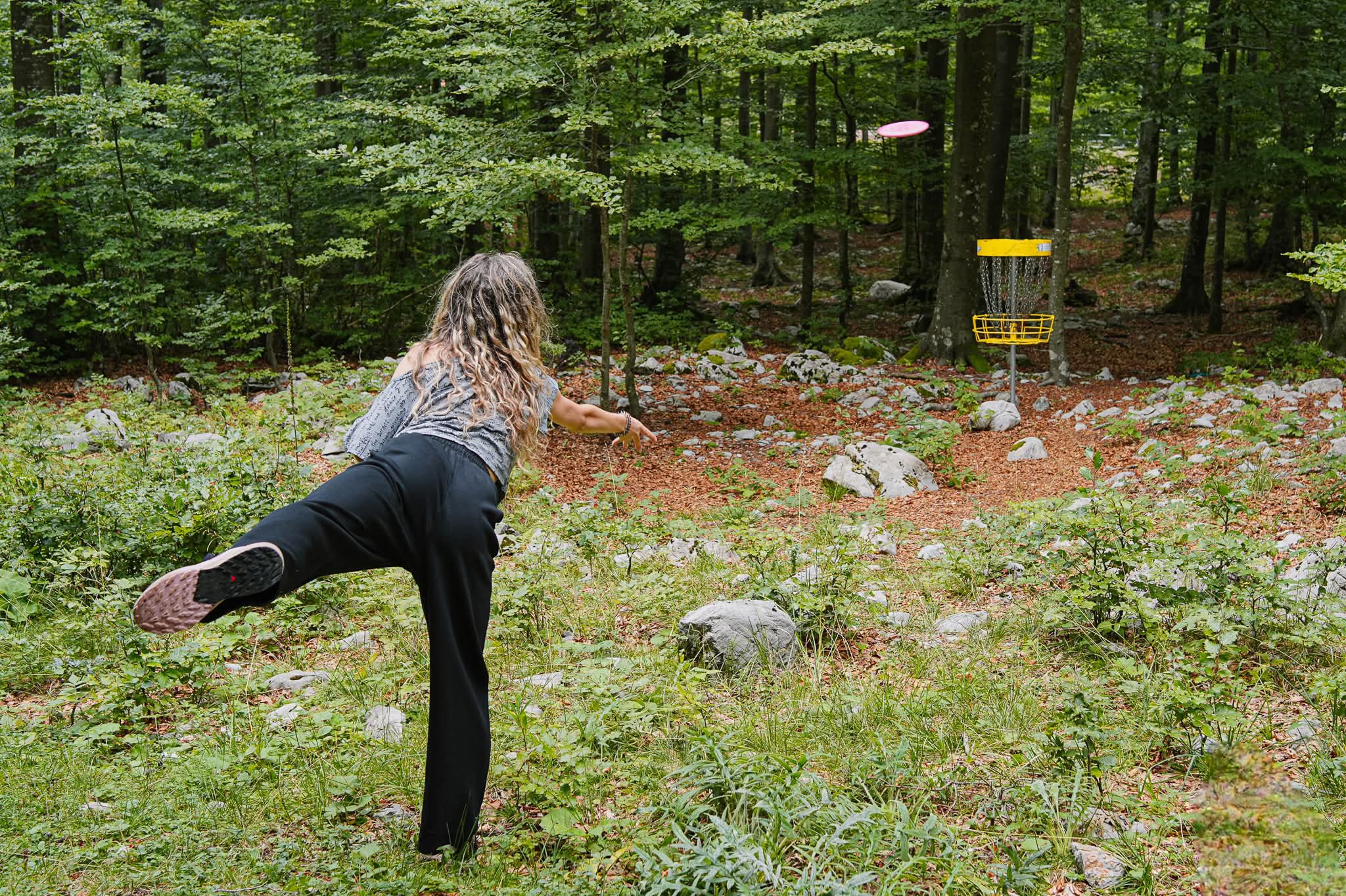 Consiste di 18 buche, le regole del gioco sono simili al classico mini golf, e la differenza consiste nel lanciare dischi appositamente progettati in un cestino per dischi.
